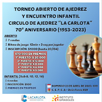 TORNEO ABIERTO DE AJEDREZ Y ENCUENTRO INFANTIL "CIRCULO DE AJEDREZ “LA CARLOTA” – 70° ANIVERSARIO (1953-2023)